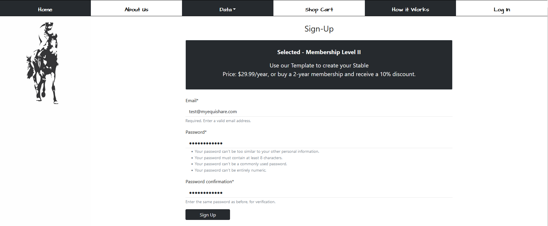 1.4 If you select Level II Membership, you have an option to upload your “My Stable” or