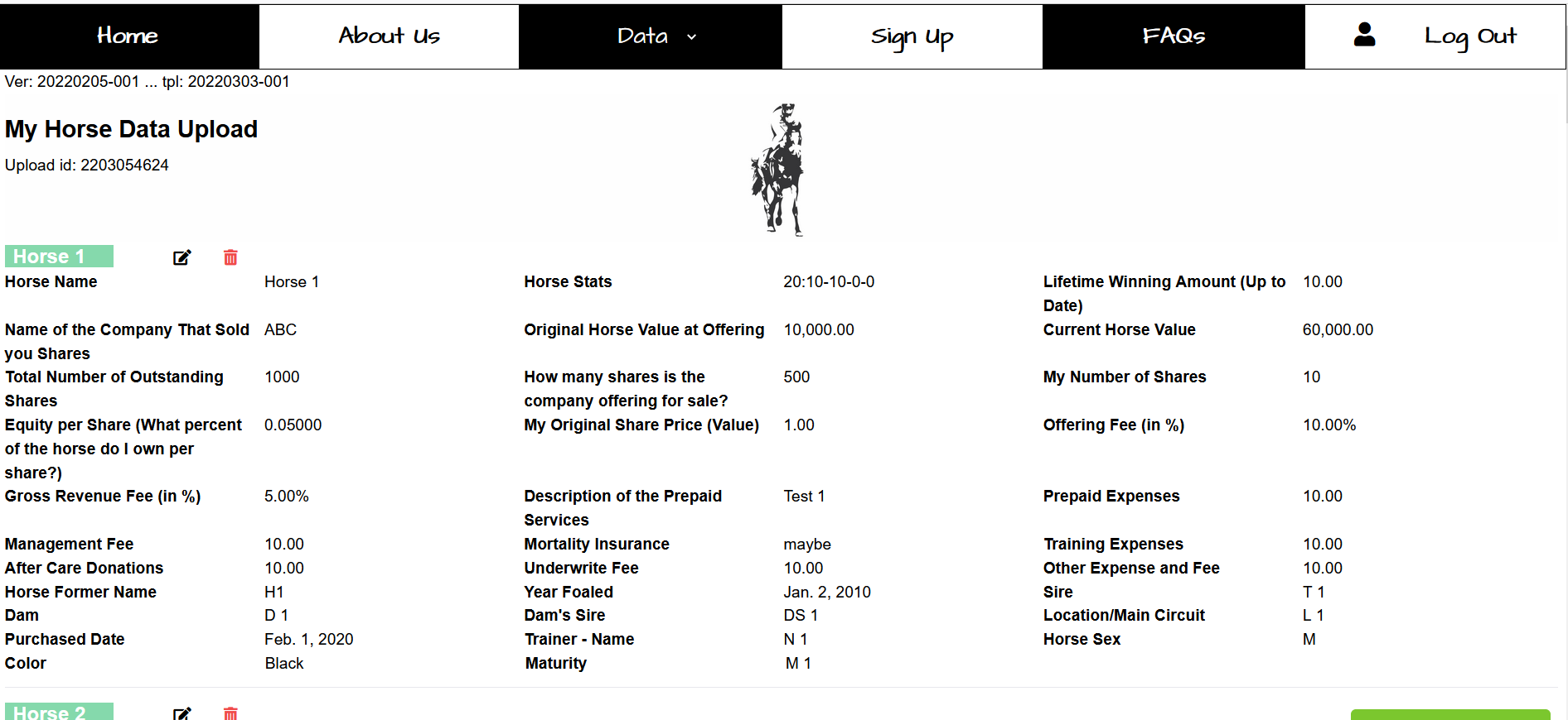 1.10 If your file upload was successful, you would see the “My Horse Data Upload” page.