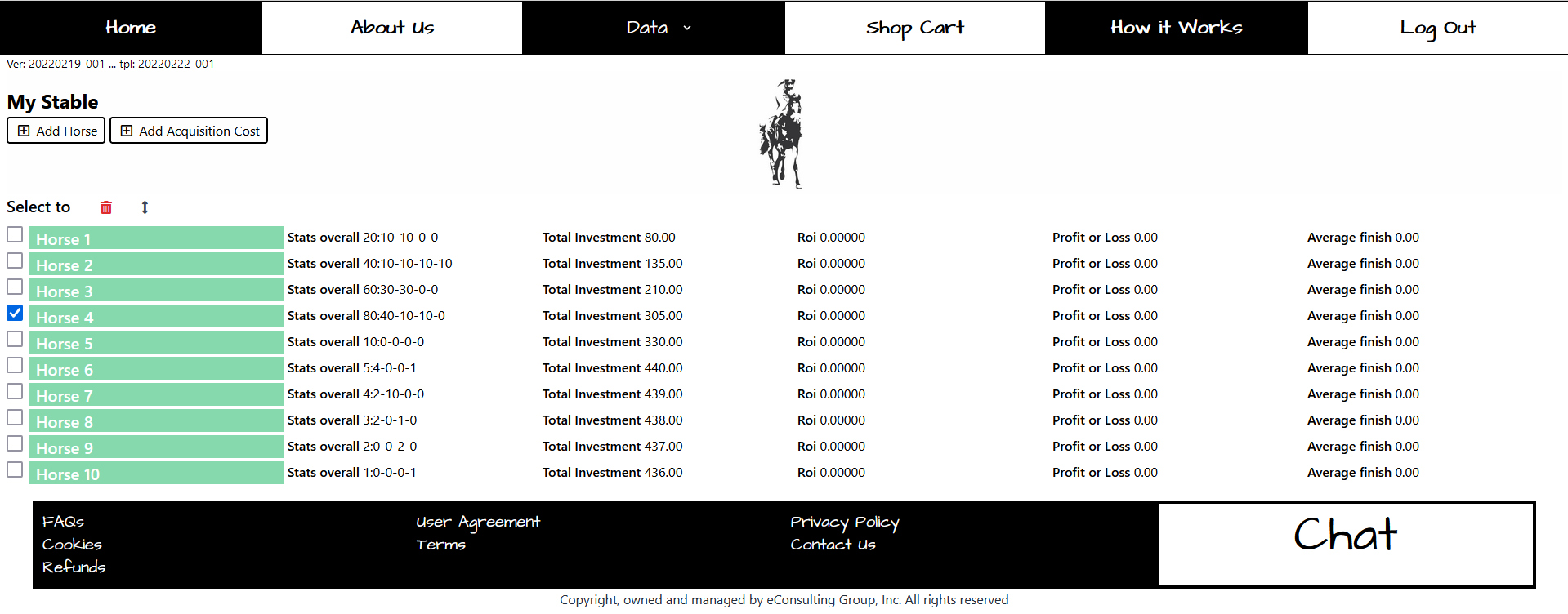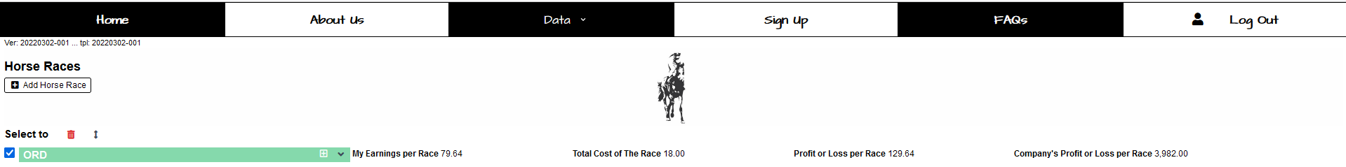To see the full list of your horses, go to the header menu, “DATA”, and click on the