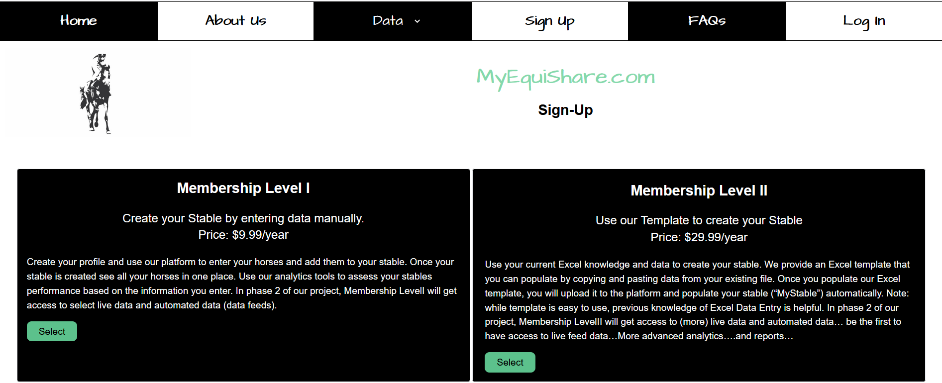 1.4 If you select Level II Membership, you have an option to upload your “My Stable” or