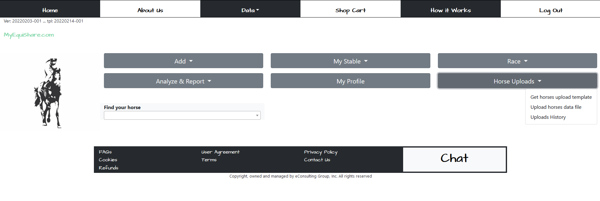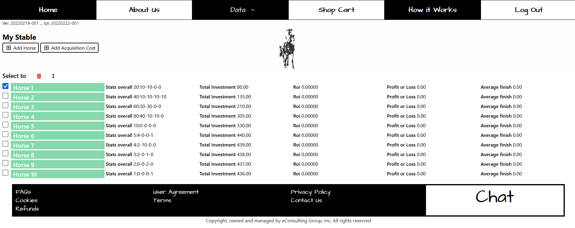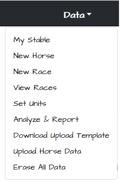 To see the full list of your horses, go to the header menu, “DATA”, and click on the