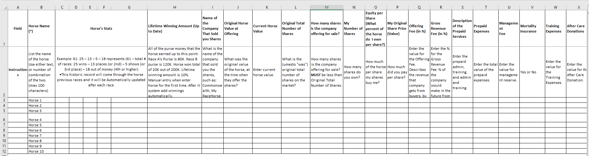- Original Horse-Share Price 10.00, this field will tell you the original price per share for your horse.