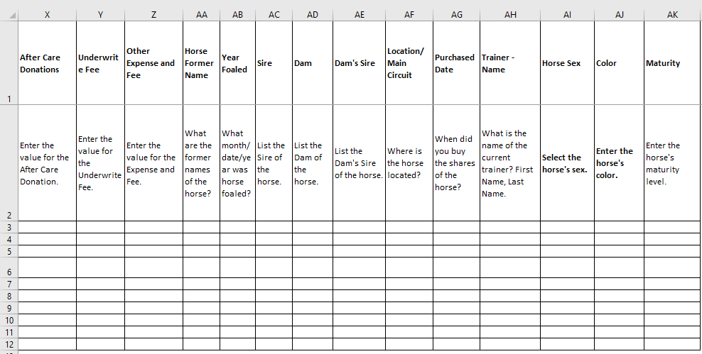 Horses Upload template”. Your computer will ask you where you want to download the template. Please remember the