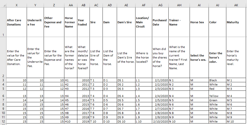 list of horses by using our template. To download the template, after you login: