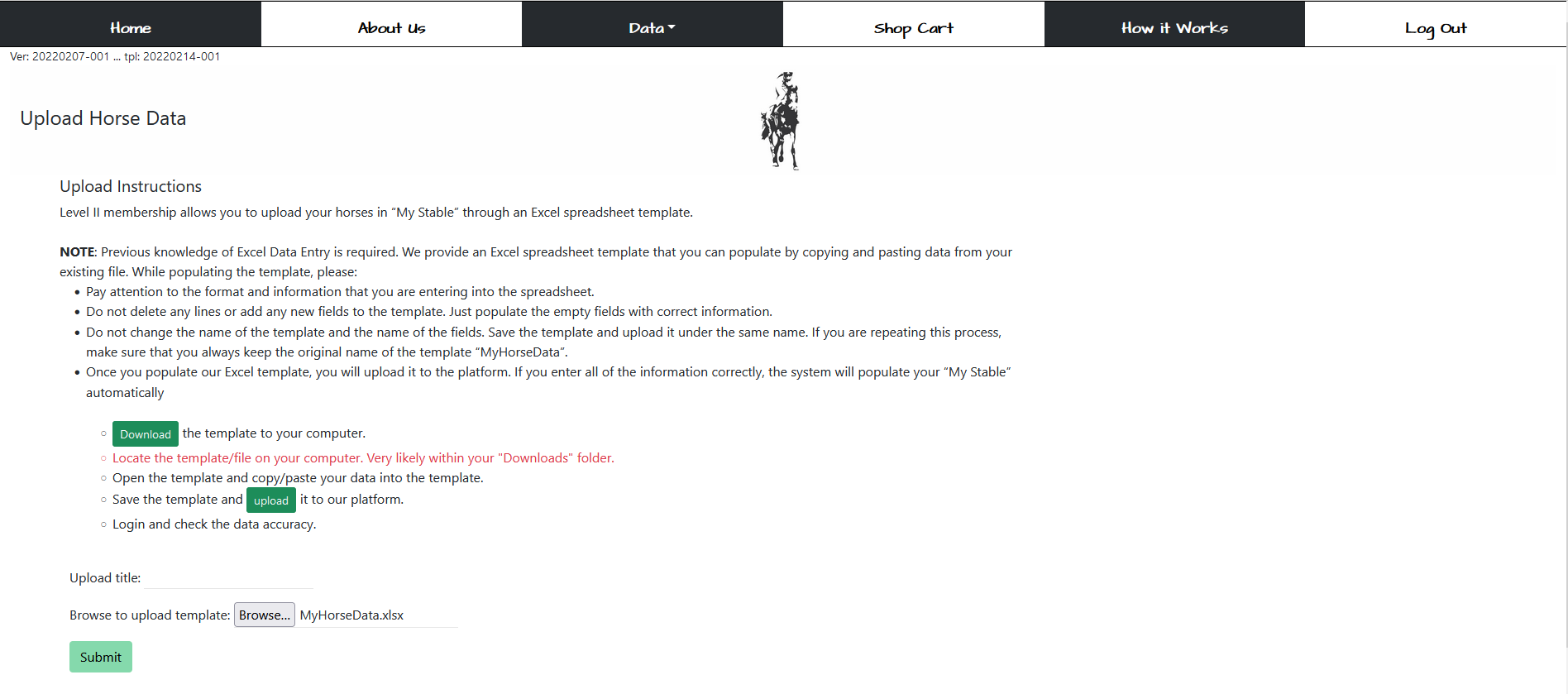 1.10 If your file upload was successful, you would see the “My Horse Data Upload” page.