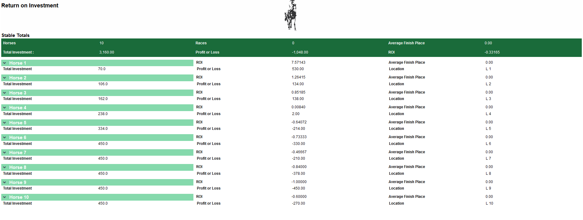 If you go to Horse Details, you would be able to see Total Profit or Loss per Horse.